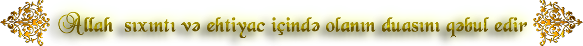 Allah başqa bir ayədə isə sıxıntı və ehtiyac içində olanın duasını qəbul etdiyini bildirir: