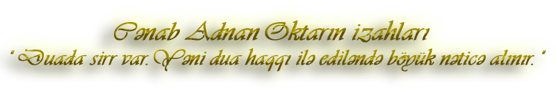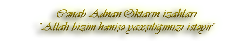 (Cənab Adnan Oktarın Çay tv müsahibəsindən; 25 fevral, 2009)
