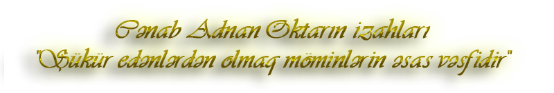 "…Allah deyir ki, tək-tək saysanız, onsuz da bitirə bilməzsiniz; amma qruplaşdıraraq saysanız, yenə də bitirə bilməzsiniz. (Nəhl surəsi, 18). Bu qədər sonsuz nemət verən Allaha bizim şükür etməyə başladığımızı düşünün, yəni nemətlərə, ömrümüz çatmaz. Hər saniyə şükür etsək, hər yer nemətlə doludur. "