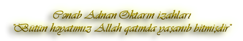 (Cənab Adnan Oktarın Adıyaman Asu TV reportajından , 4 Yanvar 2010)