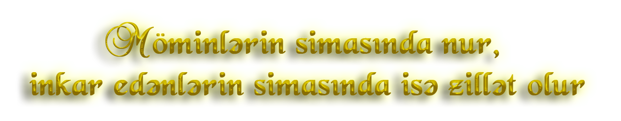 Muhəmməd Allahın Elçisidir. Onunla birlikdə olanlar kafirlərə qarşı sərt, öz aralarında isə mərhəmətlidirlər. Sən onları rüku edən, səcdəyə qapanan, Allahdan lütf və razılıq diləyən görərsən. Əlamətləri isə üzlərində olan səcdə izidir... (Fəth surəsi / 29)